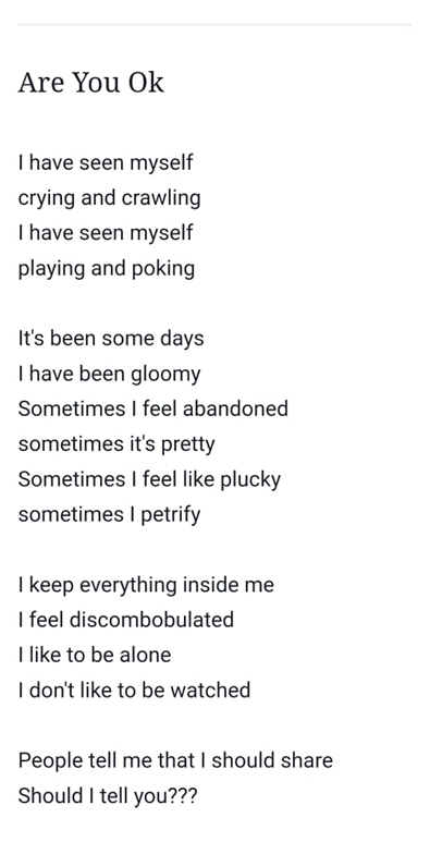 My name is Anvi Tuteja. This is a collection of poems, write-ups, short stories and reviews. This is all my personal work. Your likes and comments are always appreciated. Click the Follow button to receive e-mails about my next posts and activities.