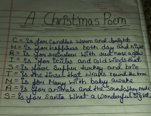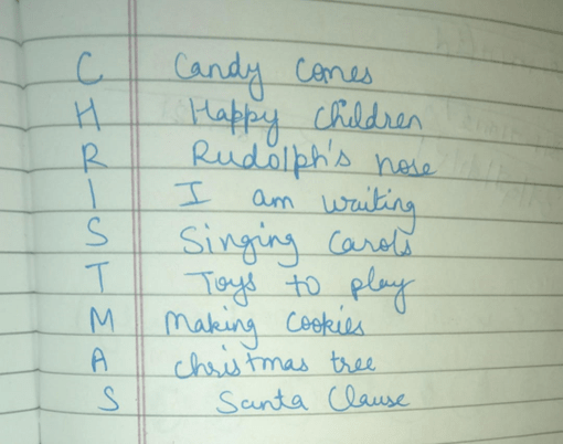 By offering a platform for creative expression, The Wonder Capsule helps students process their feelings and share their experiences in a supportive environment. Whether it’s through acrostic poems on the theme of Christmas or more personal narratives, students are encouraged to explore their world and connect with others in meaningful ways.